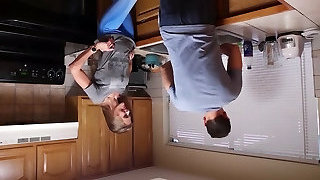 una splendida calda casalinga flirta allegramente in cucina, i fan eccitanti con il suo jiggling rimbalzare culo e piedi nudi sul