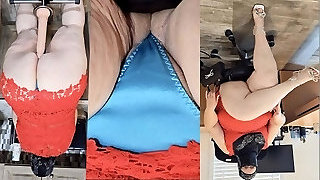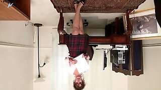 Maturo ufficio di mamma e strofina la sua figa pelosa