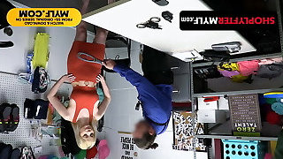 shoplyfter mylf-bomba bionda si inginocchia davanti al responsabile della sicurezza per evitare problemi