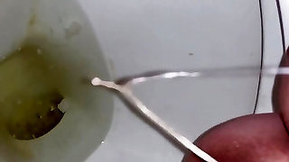 massiccia piscio con perline anale mentre si alzò sopra il wc