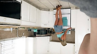 Mature mummy Megan Hart gives a filthy blowjob in the kitchen