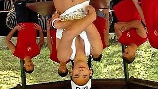 A girl gangbangs the entire basketball squad