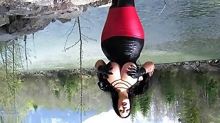 Gothic Latex Fantasy - Dirty Outdoor Blowjob Handjob with Spandex Gloves - Cum on my Tits