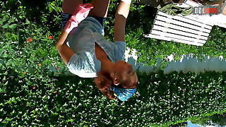 Sheer Stretch Pants Nature Walk With Fat Booty Flashing