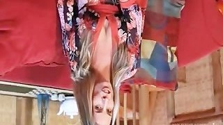 A sexy hot housewife flirts joyfully in the kitchen, exciting fans with her shaking bouncing ass and naked feet on the