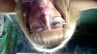 Lusty first-timer blond haired granny in glasses masturbates her twat