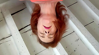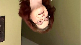 Redhead Plus-size amateur mature MILF masturbates in the kitchen