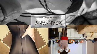Fucking Luxurious wife's legs in shiny pantyhose