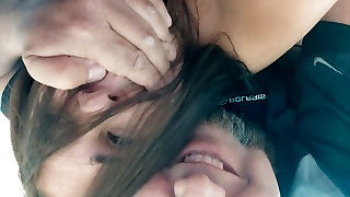 short woman has her rump destroyed after offering it to me in the shopping mall parking lot