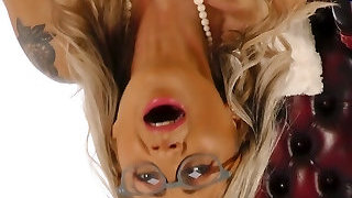 Mature blonde stunner Rosie XT frolicking with her pussy on the floor