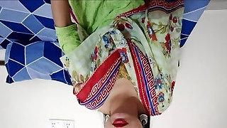 A stepmother wearing a saree She was hide watching me stroking while watching porn video