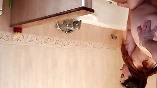 My neighbor is surprised in my shower with the fine blowjob