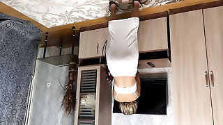 Red XXX masturbates in the kitchen