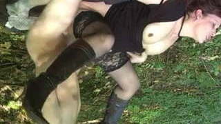 Mature BBW with immense fleshy jugs posing on a loan outdoor