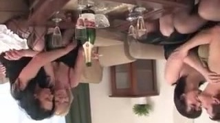 Tea party turns into a hookup orgy. Two grannys fuck each other wildly in their holes