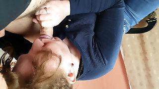 Mature Milf Gives Blowjob And Swallows Cum Before Sofa