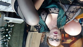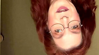 Mature glasses wearing ginger-haired in stockings
