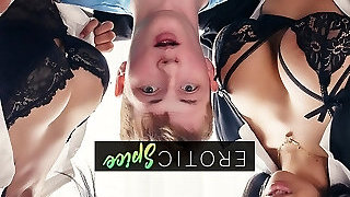 Nerdy pervert gets fortunate and fucks two lingerie honies in bed