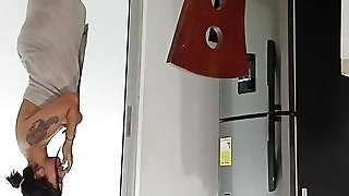 The stepmom was cooking and saw the stepson bare and could not resist