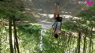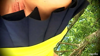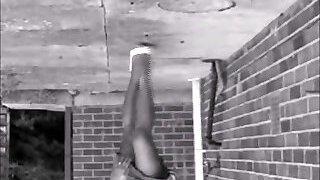 Red-hot pussy nectar of horny Cougar in pantyhose outdoors – bottom view