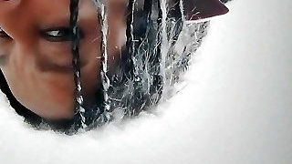 Cold. Sizzling housewife Lukerya with cheery flirting warms herself in front of the webcam while sitting on the washing mac