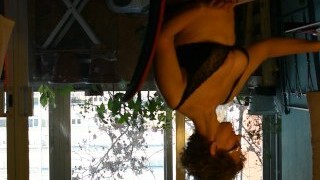 Slender musculat dancer MILF flexes on web cam